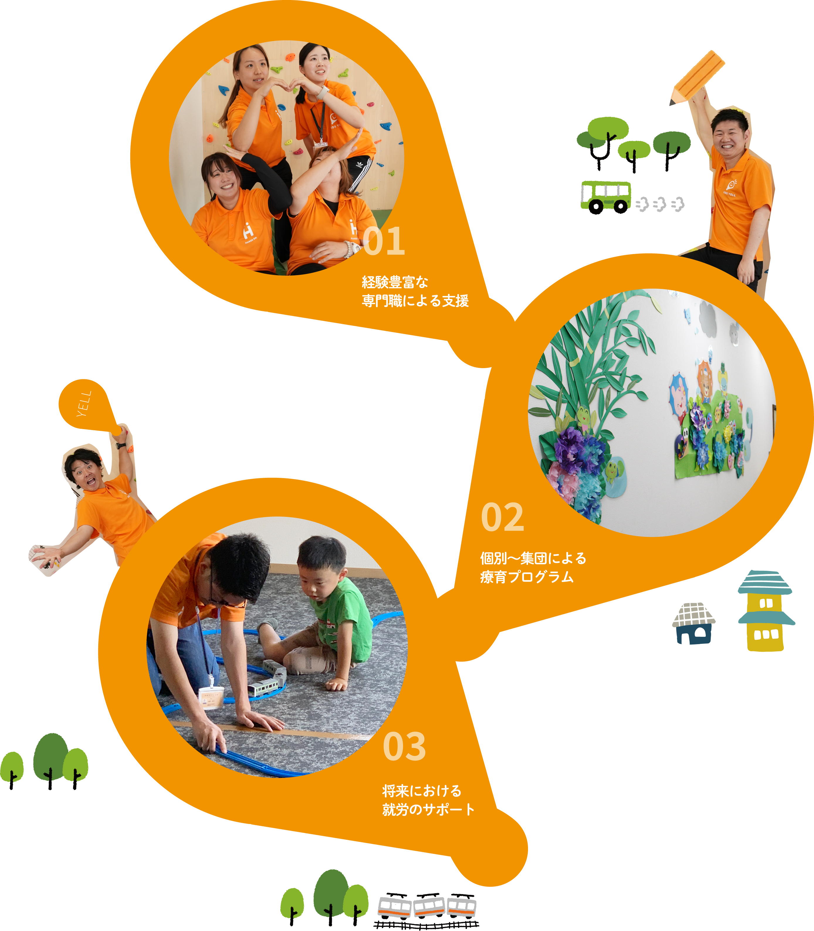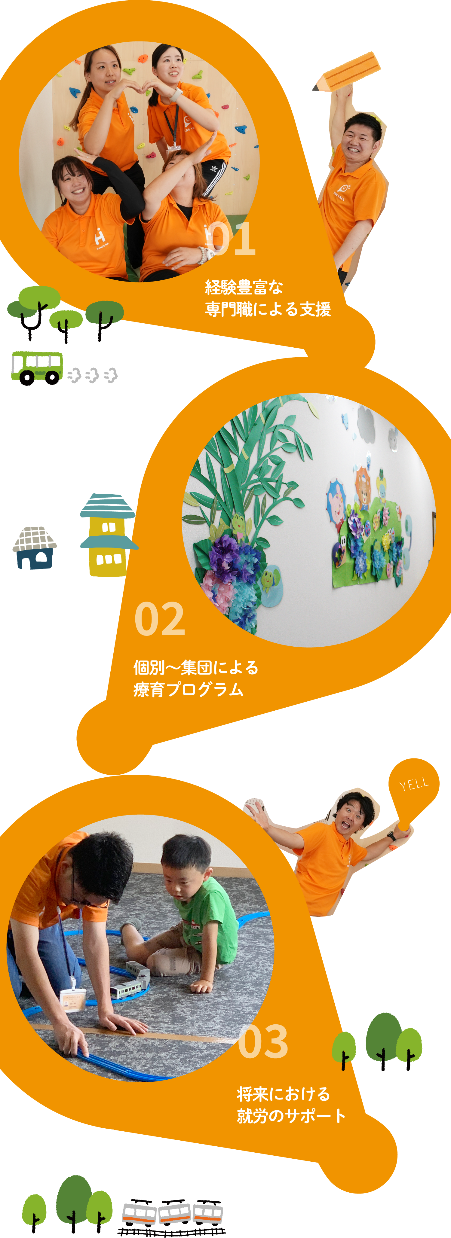 発達の遅れなど一定の認定を受けた子ども達 (小学校~高校)が、学校が終わった後や休みの日に利用できる施設です。 子ども達の「遊び場」「教育の場」「家庭サポート」等の支援を行っています。